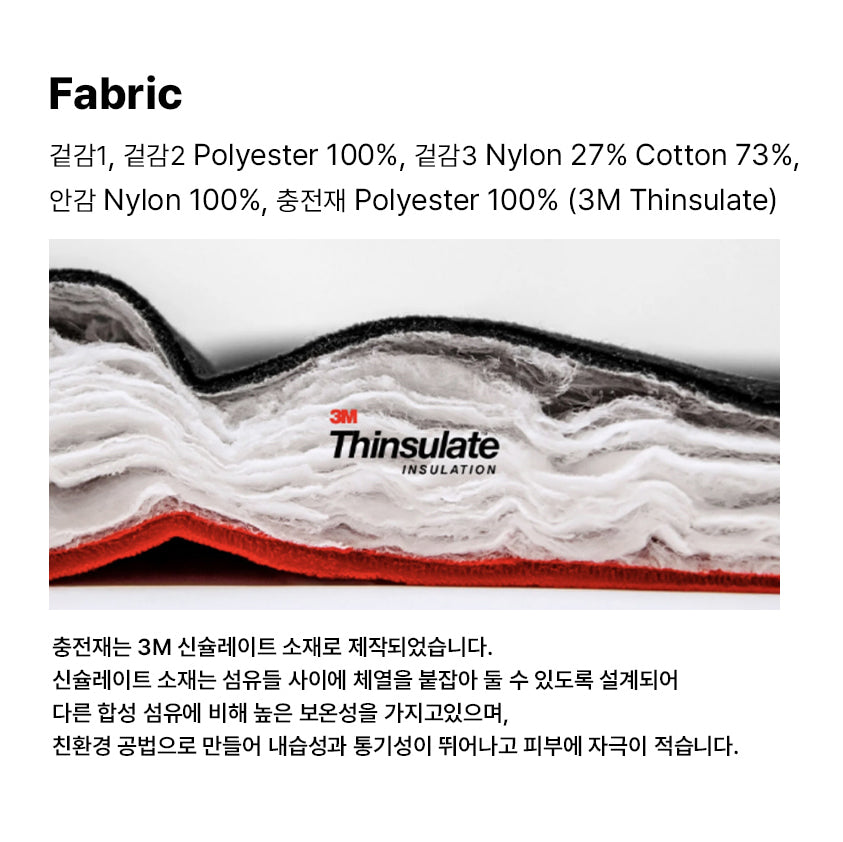 Outer fabric 1: Polyester 100% Outer fabric 2: Polyester% 100 Outer fabric 3: Nylon 27% Cotton 73% |