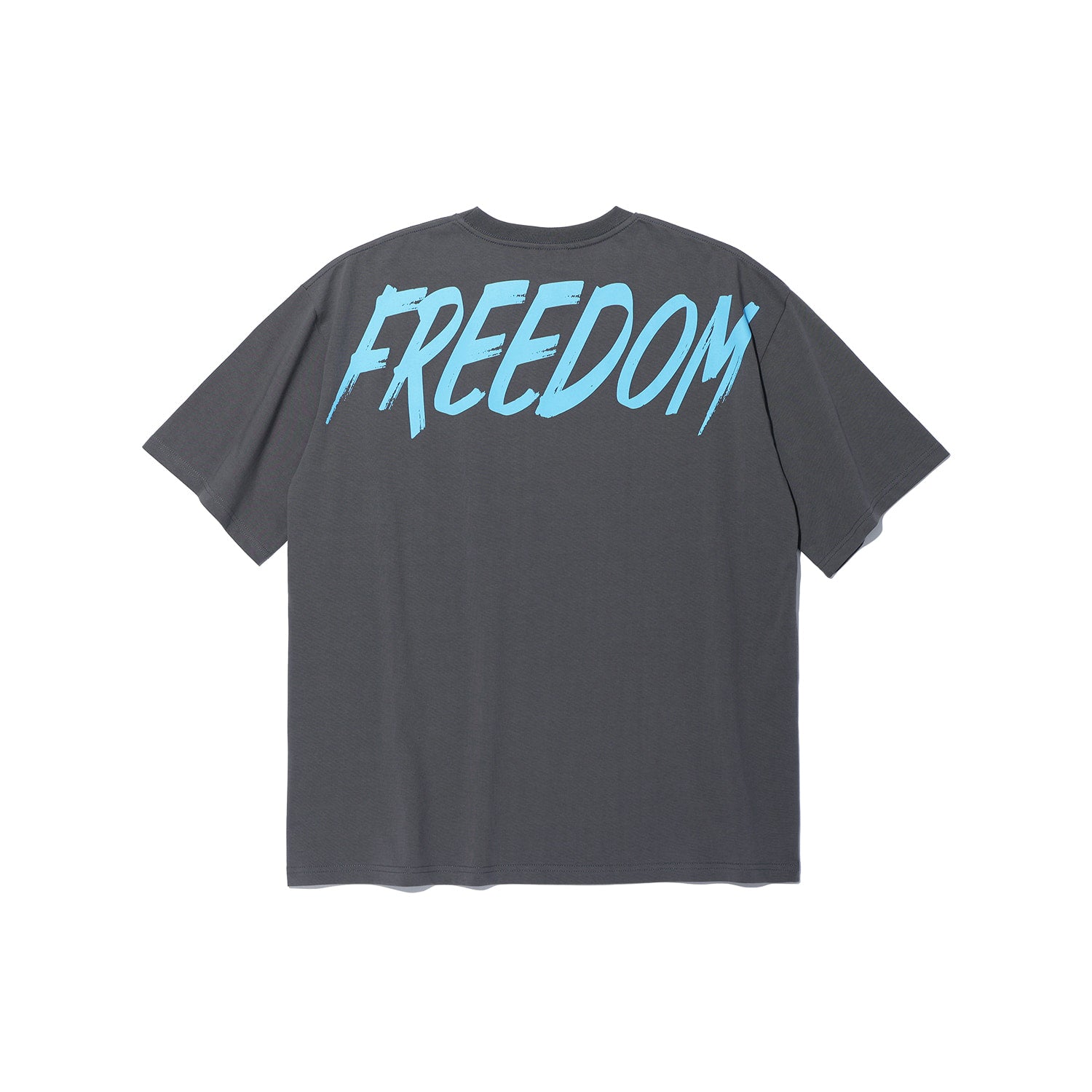 Freedom Overfit Back Print T-Shirt (Dark Grey/Blue)