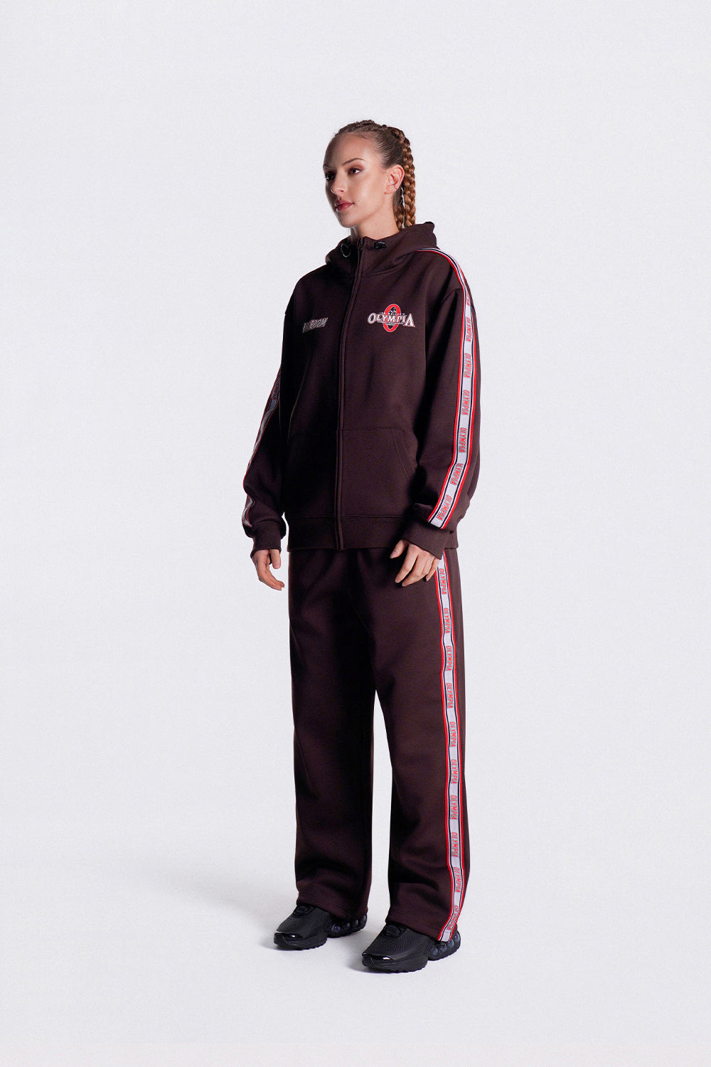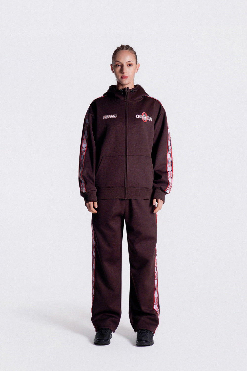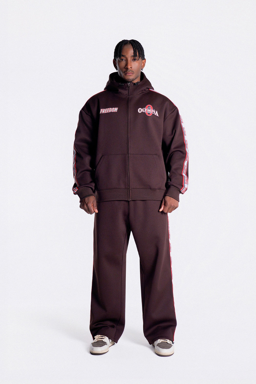 Olympia Lettering Hood Zip-up (Brown)